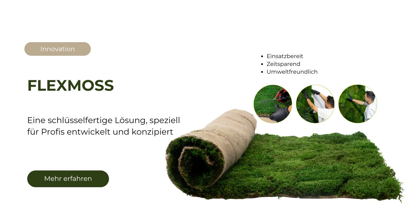 Speziell von Phocealys für Fachleute der Pflanzen-Dekoration entwickelt, präsentiert sich dieses innovative Produkt in Form einer einsatzbereiten stabilisierten Flachmoosplatte. Seine Flexibilität und einfache Handhabung ermöglichen es, wertvolle Zeit bei der Umsetzung von Projekten für grüne Wände zu sparen. Flexmoss wurde entwickelt, um die Installation Ihrer Kreationen zu optimieren und gleichzeitig ein ästhetisches und natürliches Ergebnis zu garantieren. Flexmoss ist eine 100 % ökologische Lösung, die Praktikabilität und Respekt für die Umwelt vereint. Diese Innovation steht im Einklang mit einem nachhaltigen Ansatz und ist ideal für verantwortungsvolle Pflanzenkreationen.