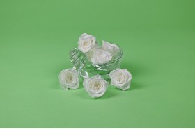 TraitementZuerst werden die Rosen in eine Lösung aus konzentriertem Alkohol getaucht, um sie zu dehydrieren und zu entfärben. Anschließend erfolgt ein zweites Eintauchen in eine Lösung aus pflanzlicher Glycerin, Propylenglykol (ein Derivat von Glycerin) und Lebensmittelfarbstoffen, um die Blütenblätter zu fixieren und je nach gewünschter Farbe zu färben. Diese beiden Schritte ermöglichen es, ihren natürlichen Saft schrittweise durch die Konservierungslösung zu ersetzen.